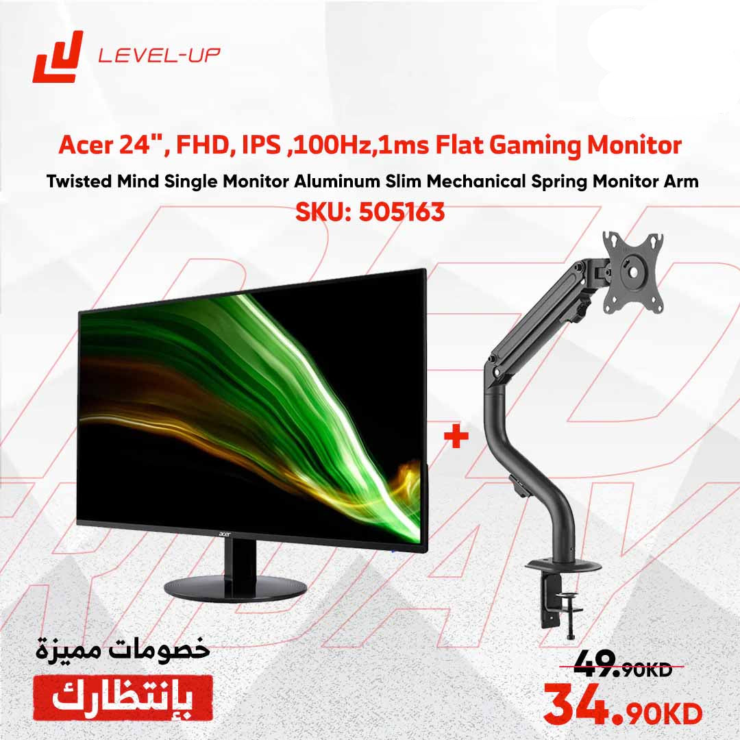 Acer 24″, FHD, IPS ,100Hz,1ms, Flat Gaming Monitor with Twisted Mind Single Monitor Aluminum Slim Mechanical Spring Monitor Arm