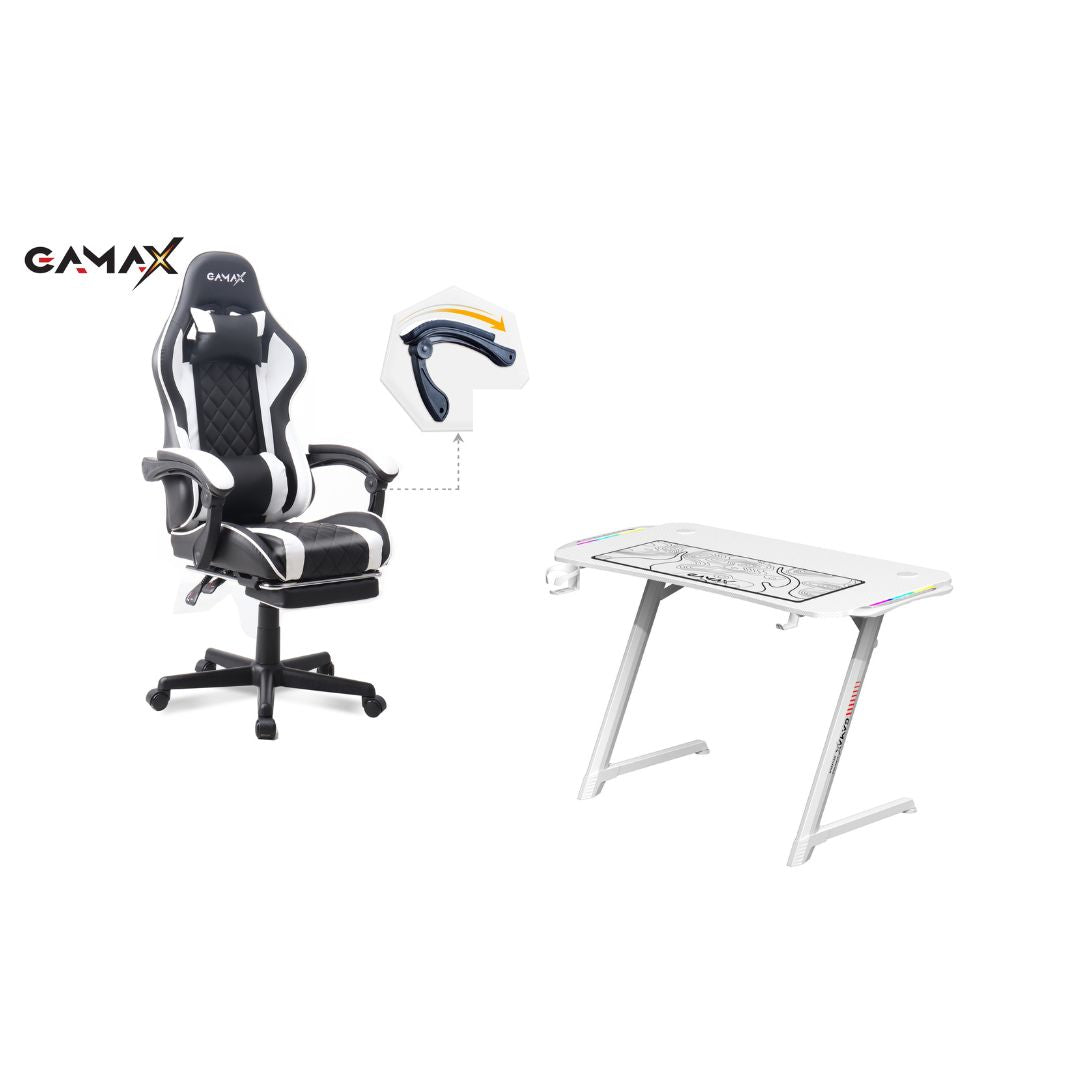Gamax Bundles: Gaming Chair Model 1-LT001L + TD-03 Carbon Fiber Gaming Table (White)