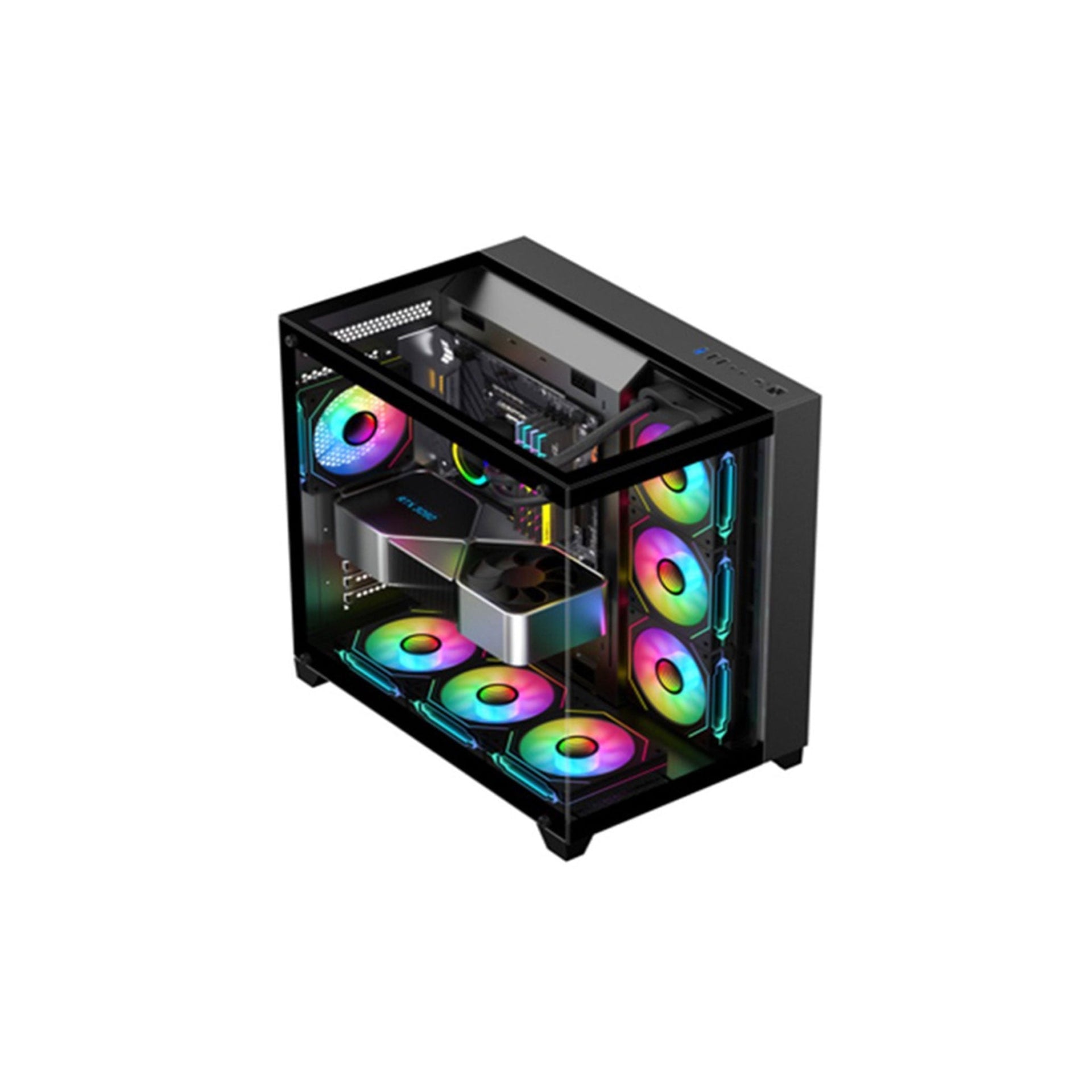 SHARX PROFIN ATX Min-Tower Gaming PC Case, With 7X 120mm Pre-Installed  ARGB Fans Model INF700B , Black