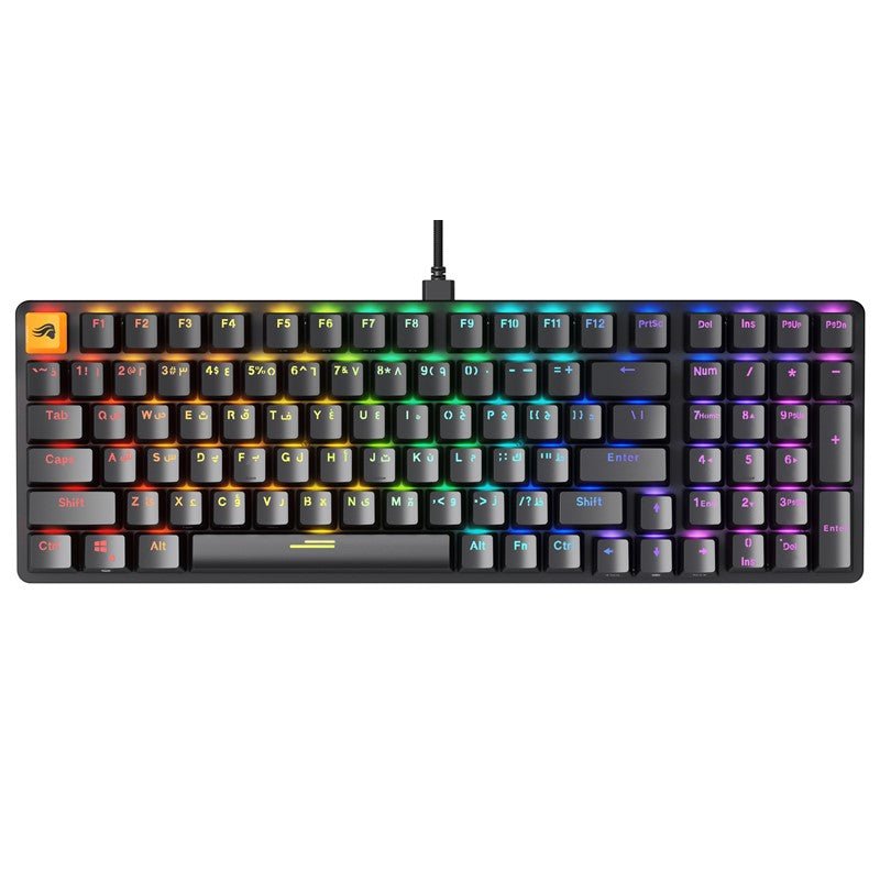 Layout: 96% compact full-size, supports Arabic & English keycaps