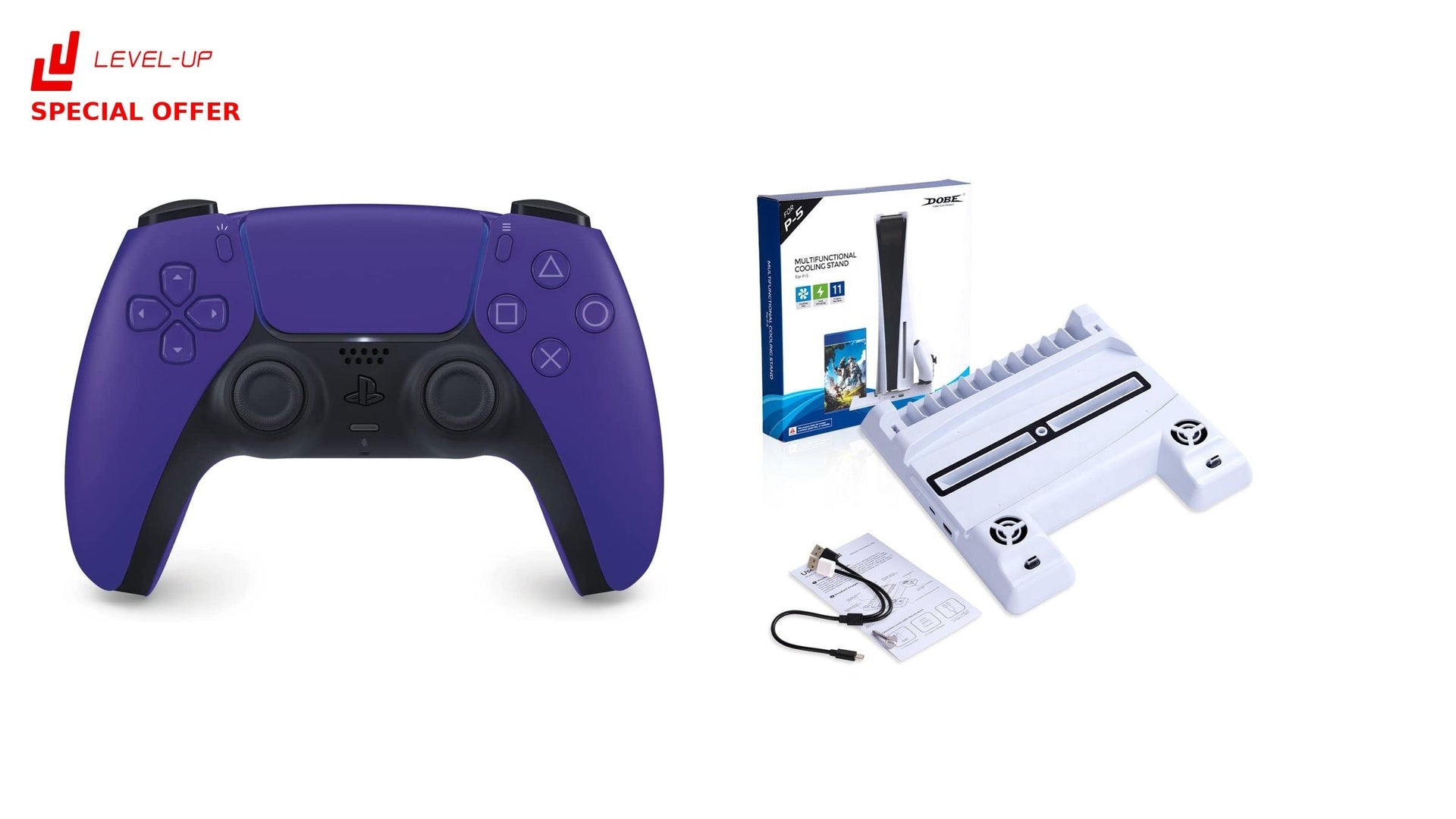 Level Up Offers: PS5 DualSense Controller Galactic Purple + Dobe PS5 Multifunctional Cooling Stand TP5-0593