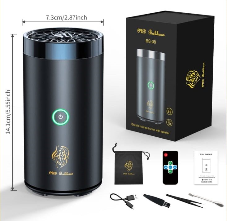 Experience the ultimate fusion of technology and tradition with the Level Up Portable Electric Bukhoor Incense Car Burner. This compact and lightweight device, designed for both men and women, is not just an incense burner but also a Bluetooth speaker and a USB charger. Its sleek black metal body is shaped elegantly to suit any car interior. The burner is easy to use, assuaging and calming, making your drives more pleasant. Connect it to your device via Bluetooth and enjoy your favorite music while refreshing your surroundings. Its rechargeable via a Type-C USB charger, providing up to 2 hoursÂ
